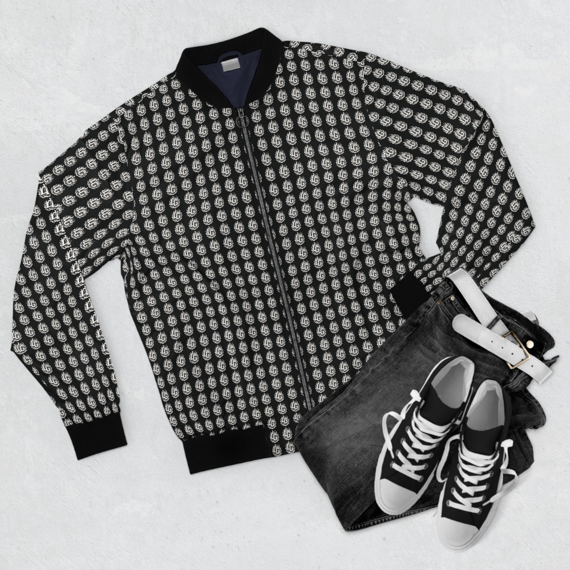Luxary Group LG Monogram White & Black Men's Bomber Jacket (AOP)